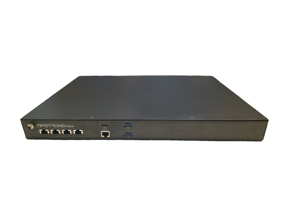 Discover our entry level high efficiency solution. The AIMSTRONG-Rack Appliance is an ideal basic solution for SOHO networks. In terms of technical features, the AIMSTRONG-Rack is an efficient fanless rackmount network appliance with Intel©  Celeron N3350 Processor, 4 x RJ45 GbE ports, 8GB DDR3L 1600 SO-DIMM and 128GB M-SATA storage.